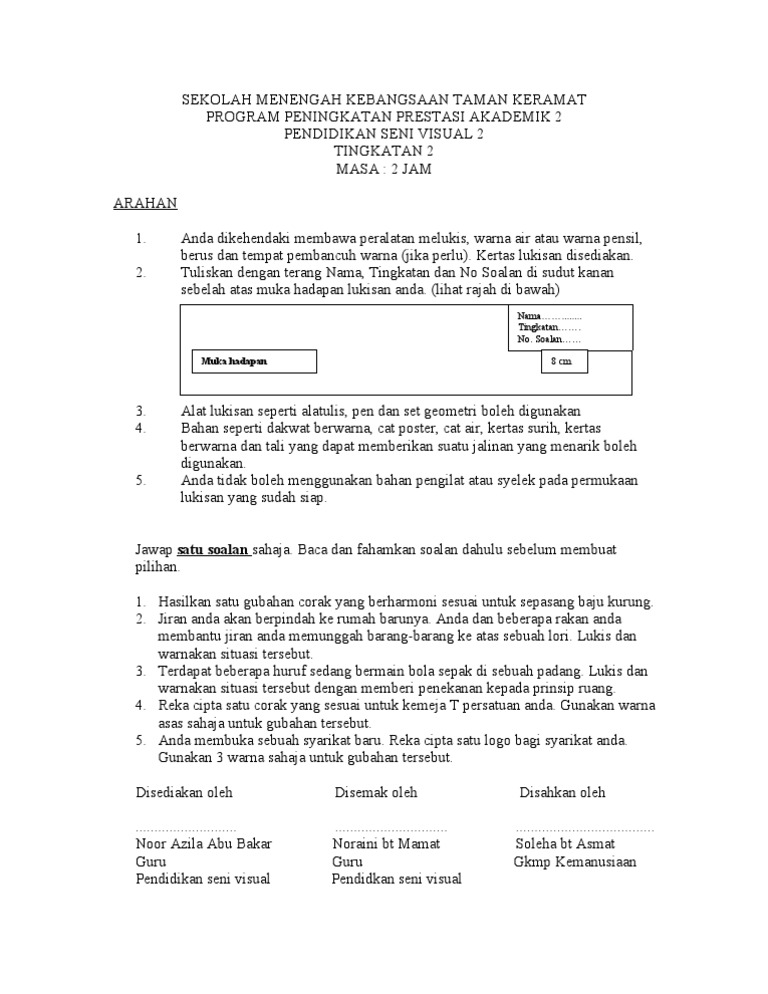 Contoh Soalan Seni Spm Kertas 2 2018